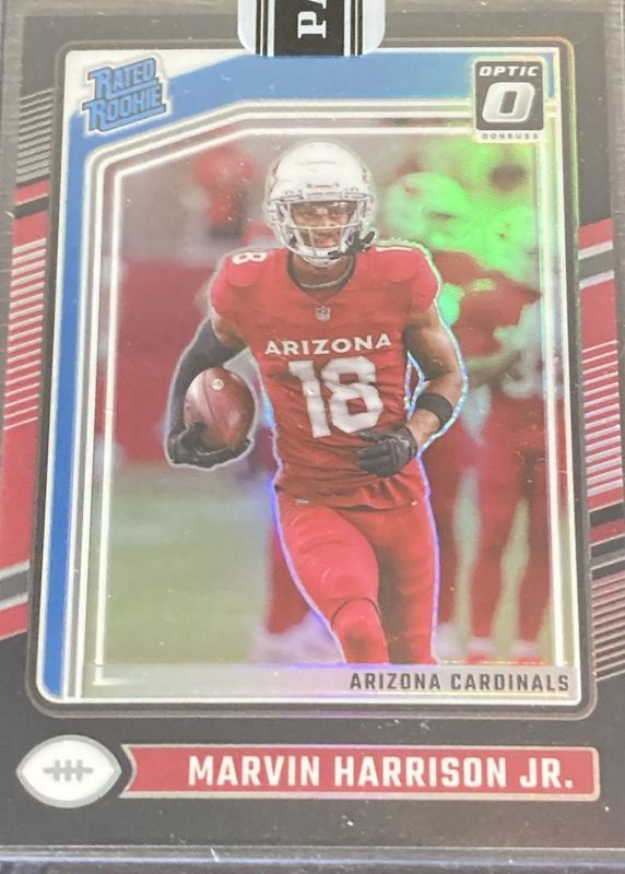 The Marvin Harrison Jr. 2024 Optic #276 Black /1 Rookie card in Raw condition has not changed in price in the last 30 days and was last sold for $2,000.00 .