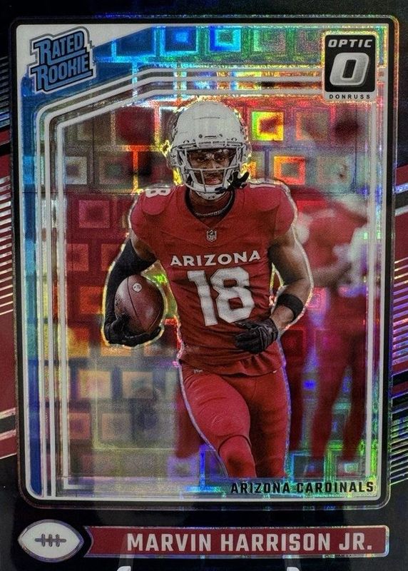 This card is 1 of 101 Marvin Harrison Jr.'s card variations in the 2024 Optic set being tracked by Sports Card Investor, including Base, Blue Hyper, Blue Scope, Green Hyper, and Green Velocity.
