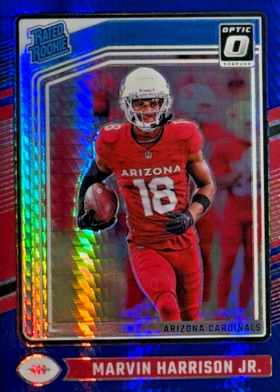 The Marvin Harrison Jr. 2024 Optic #276 Blue Hyper Rookie card in Raw condition has moved down -$0.70 (-23.3%) in the last 30 days and was last sold for $2.30 .