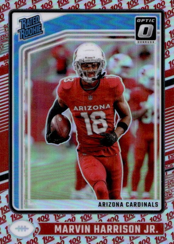 The Marvin Harrison Jr. 2024 Optic #276 One Hundred /(SSP) Rookie card in Raw condition has not changed in price in the last 30 days and was last sold for $31.00 .