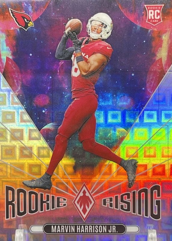 The Marvin Harrison Jr. 2024 Phoenix #RR-MHJ Rookie Rising - Pandora card in Raw condition has not changed in price in the last 30 days and was last sold for $9.50 .