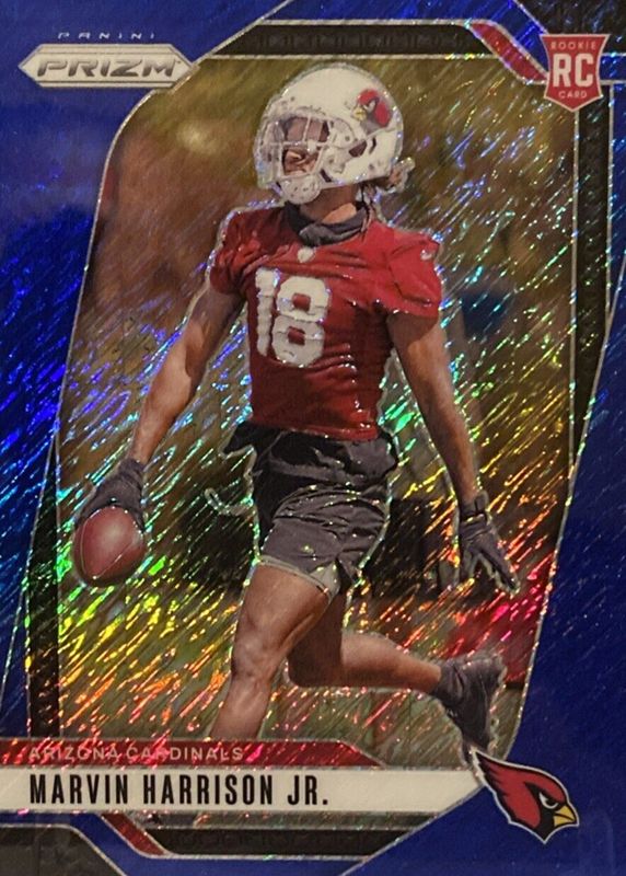 The Marvin Harrison Jr. 2024 Prizm #375 Blue Shimmer /25 Rookie card in Raw condition has not changed in price in the last 30 days and was last sold for $177.50 .