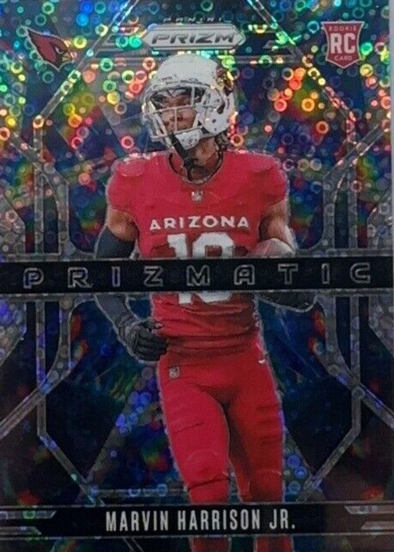 The Marvin Harrison Jr. 2024 Prizm #12 Prizmatic - No Huddle Rookie card in Raw condition has not changed in price in the last 30 days and was last sold for $6.48 .