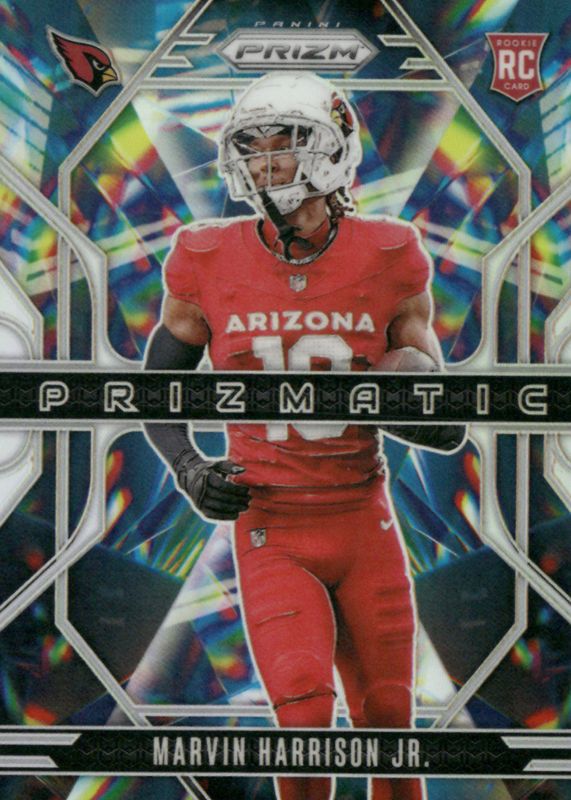 The Marvin Harrison Jr. 2024 Prizm #12 Prizmatic - Silver Rookie card in Raw condition has moved up $2.51 (+254%) in the last 30 days and was last sold for $3.50 .