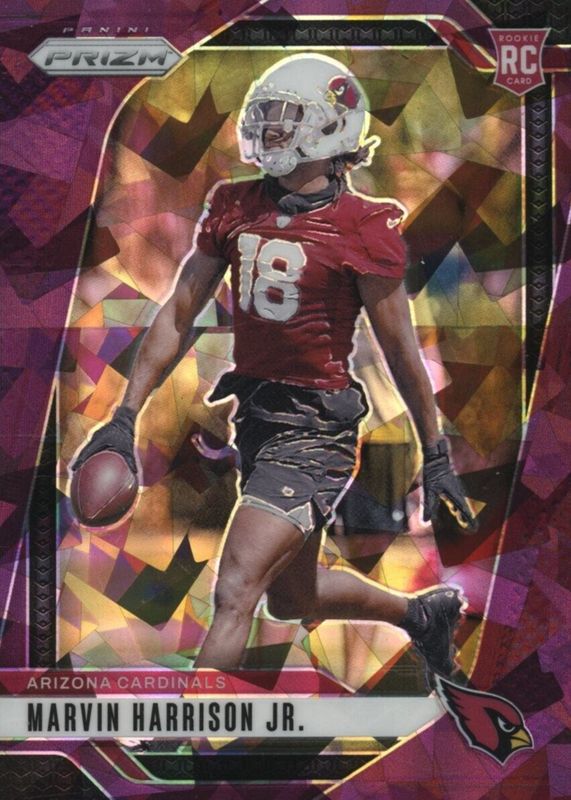 The Marvin Harrison Jr. 2024 Prizm #375 Purple Ice /225 Rookie card in Raw condition has not changed in price in the last 30 days and was last sold for $41.00 .