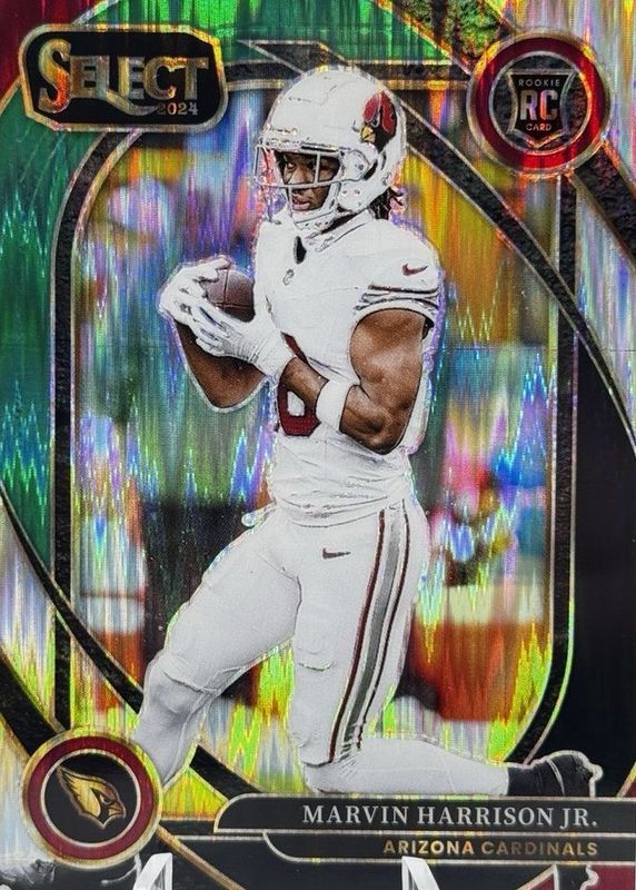 The Marvin Harrison Jr. 2024 Select #219 Club Level Black & Green Shock Rookie card in Raw condition has moved up $0.50 (+33.3%) in the last 30 days and was last sold for $2.00 .