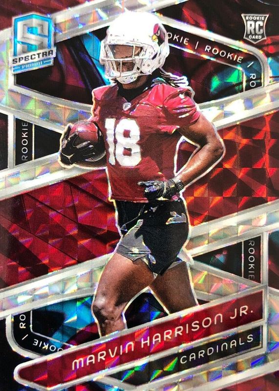 The Marvin Harrison Jr. 2024 Spectra #112 Interstellar /60 Rookie card in Raw condition has not changed in price in the last 30 days and was last sold for $18.00 .