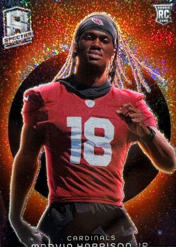This card is 1 of 41 Marvin Harrison Jr.'s card variations in the 2024 Spectra set being tracked by Sports Card Investor, including #112 Base, #4 Base, #112 Silver, #4 Silver, and #4 Celestial /99.