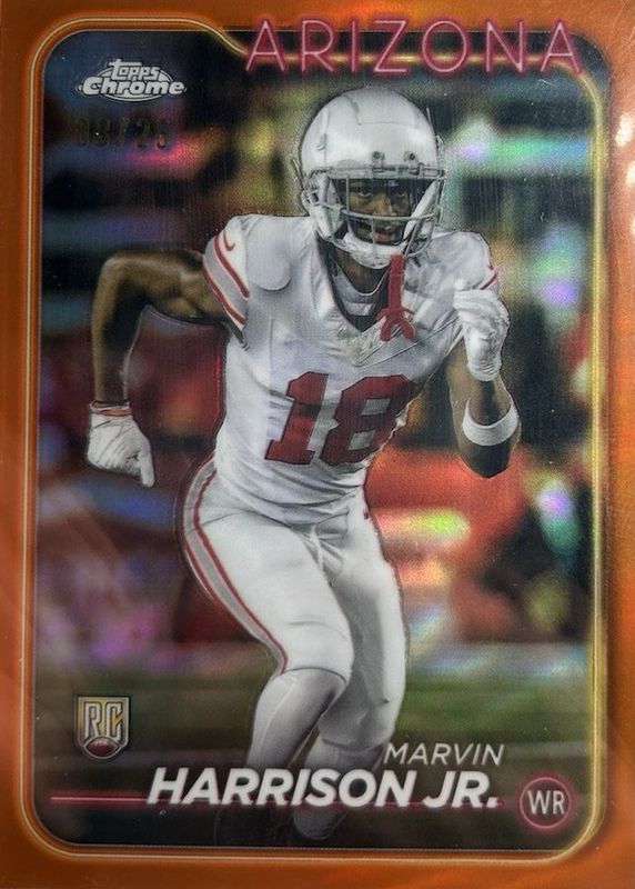 The Marvin Harrison Jr. 2024 Topps Chrome #204 Orange Refractor /25 Rookie card in Raw condition has not changed in price in the last 30 days and was last sold for $60.00 .