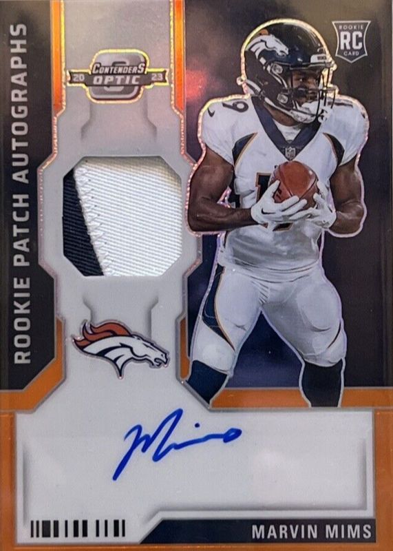 Best Prices Available For Sale of Marvin Mims Jr. 2023 Contenders Optic #RPA-MM Rookie Patch Auto - Orange /25