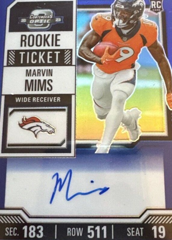 Marvin Mims Jr. 2023 Contenders Optic #124 Rookie Ticket Auto - Blue /75 RAW Price Guide