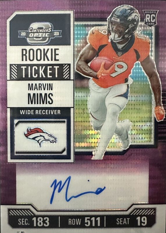 2023 Contenders Optic FOTL Marvin Mims Rookie Ticket Auto PURPLE PULSAR 1/21 SSP
