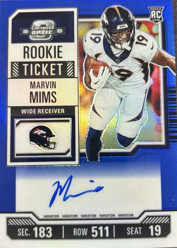 Marvin Mims Jr. 2023 Contenders Optic #124 Rookie Ticket Auto Variation - Blue /50 RAW Price Guide