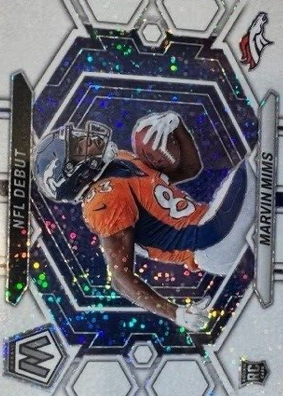 Marvin Mims Jr. 2023 Mosaic #ND-13 NFL Debut - White Sparkle /(SSP) Rookie RAW Price Guide