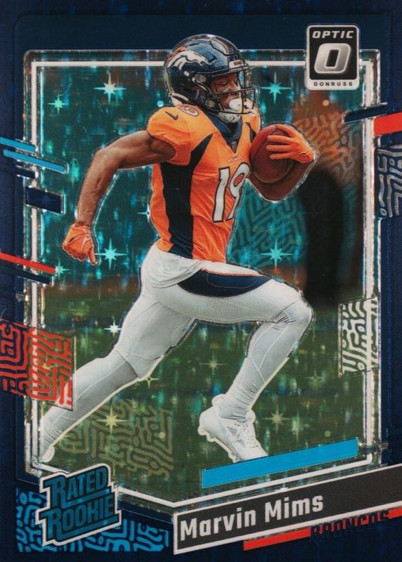 This card is 1 of 61 Marvin Mims Jr.'s card variations in the 2023 Optic set being tracked by Sports Card Investor, including Base, Blue Hyper, Blue Scope, Green Hyper, and Green Velocity.