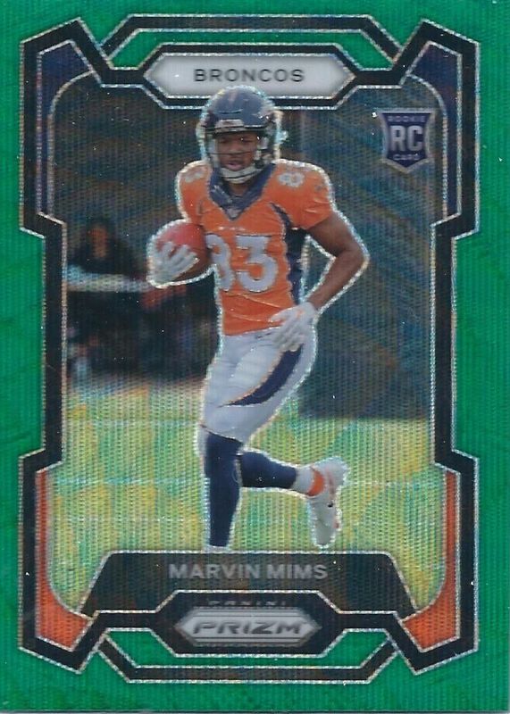 Marvin Mims Rookie Card 2023 Panini Prizm Green Wave Prizm Card #327 Broncos RC