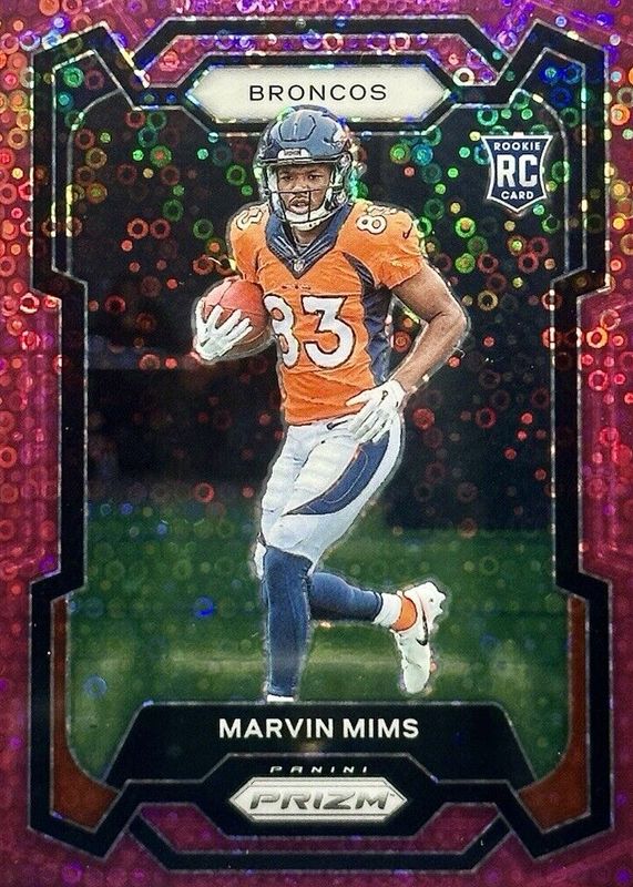 2023 Prizm Marvin Mims #327 No Huddle Pink /15 RC Broncos Last on print 15/15
