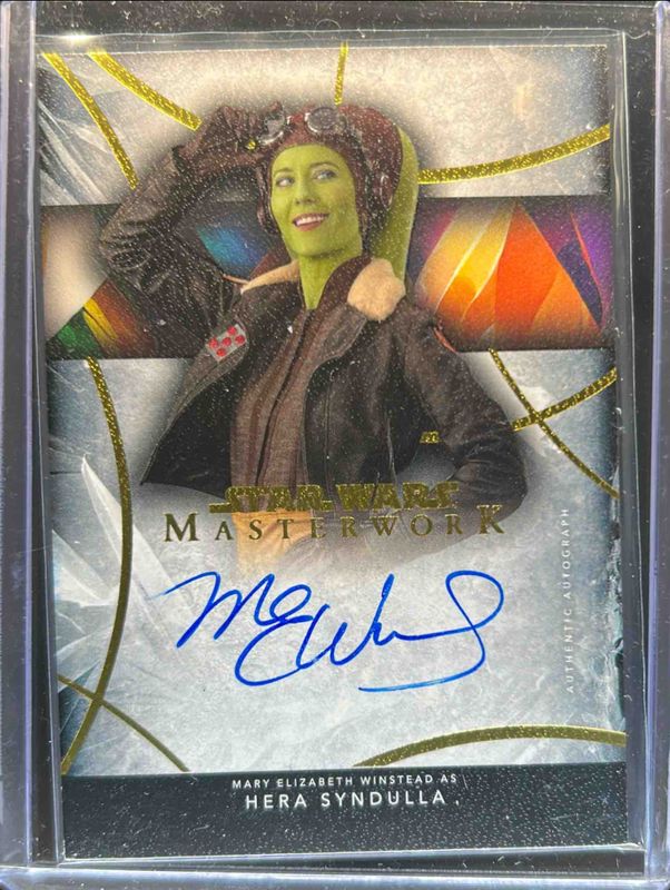 The Mary Elizabeth Winstead 2024 Topps Star Wars Masterwork #A-MEW Autographs - Canvas /25 card is 1 of 12 Mary Elizabeth Winstead's card variations in the 2024 Topps Star Wars Masterwork set being tracked by Sports Card Investor, including Autographs, Autographs - Blue Foil /99, Autographs - Rainbow Foil /50, Autographs - Wood /10, and Autographs - Silver Framed /5.