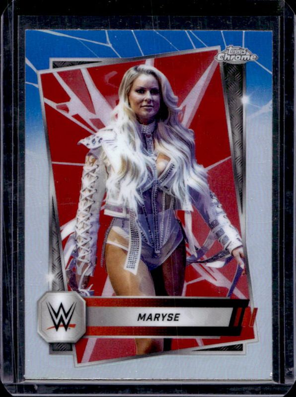 The Maryse 2025 Topps Chrome WWE #109 Red & Blue Refractor card is 1 of 34 Maryse's card variations in the 2025 Topps Chrome WWE set being tracked by Sports Card Investor, including Base, Black & Gold Refractor, Neon Green & Black Refractor, Pink Shimmer Refractor, and Prism Refractor.