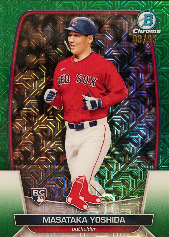 Masataka Yoshida 2023 Bowman Mega Box #58 Chrome - Green Mojo Refractor /99 Rookie RAW Price Guide