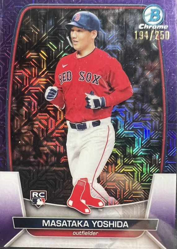 Masataka Yoshida 2023 Bowman Mega Box #58 Chrome - Purple Mojo Refractor /250 Rookie RAW Price Guide