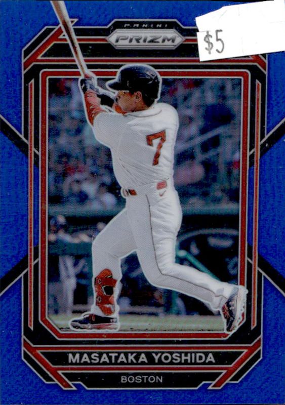 The Masataka Yoshida 2023 Prizm #1 Blue /149 Rookie card is 1 of 61 Masataka Yoshida's card variations in the 2023 Prizm set being tracked by Sports Card Investor, including Base, Blue Ice, Giraffe, Green Ice, and Hyper.
