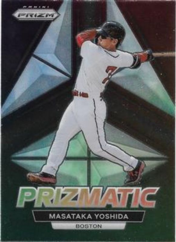 The Masataka Yoshida 2023 Prizm #P13 Prizmatic Rookie card is 1 of 61 Masataka Yoshida's card variations in the 2023 Prizm set being tracked by Sports Card Investor, including Base, Blue Ice, Giraffe, Green Ice, and Hyper.