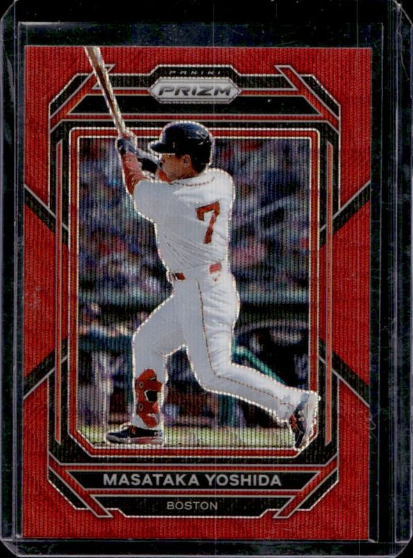 The Masataka Yoshida 2023 Prizm #1 Ruby Wave Rookie card is 1 of 61 Masataka Yoshida's card variations in the 2023 Prizm set being tracked by Sports Card Investor, including Base, Blue Ice, Giraffe, Green Ice, and Hyper.