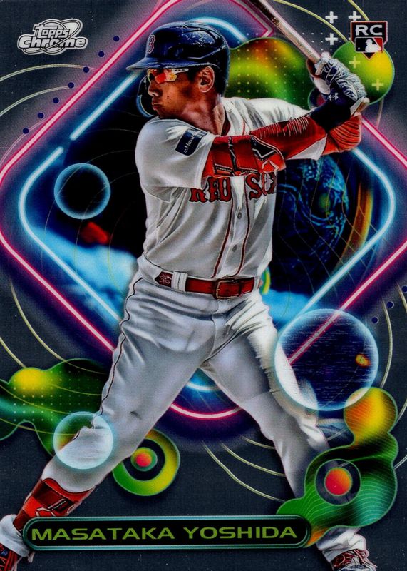 The Masataka Yoshida 2023 Topps Chrome Cosmic #185 Base Rookie card in Raw condition has moved down -$0.66 (-40.0%) in the last 30 days and was last sold for $0.99 .