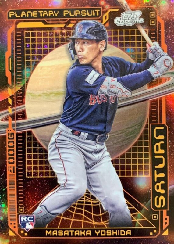 The Masataka Yoshida 2023 Topps Chrome Cosmic #PPSA-3 Planetary Pursuit - Saturn Rookie card in Raw condition has not changed in price in the last 30 days and was last sold for $202.50 .