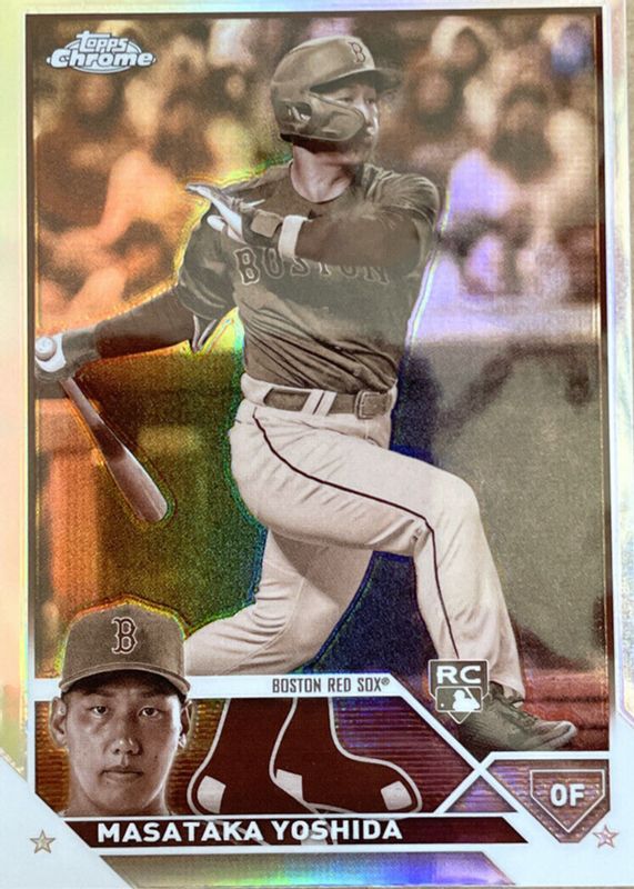 The Masataka Yoshida 2023 Topps Chrome #167 Sepia Refractor Rookie card in Raw condition has not changed in price in the last 30 days and was last sold for $1.99 .