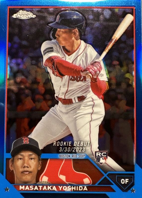 Best Prices Available For Sale of Masataka Yoshida 2023 Topps Chrome Update #USC174 Rookie Debut - Blue Refractor /150