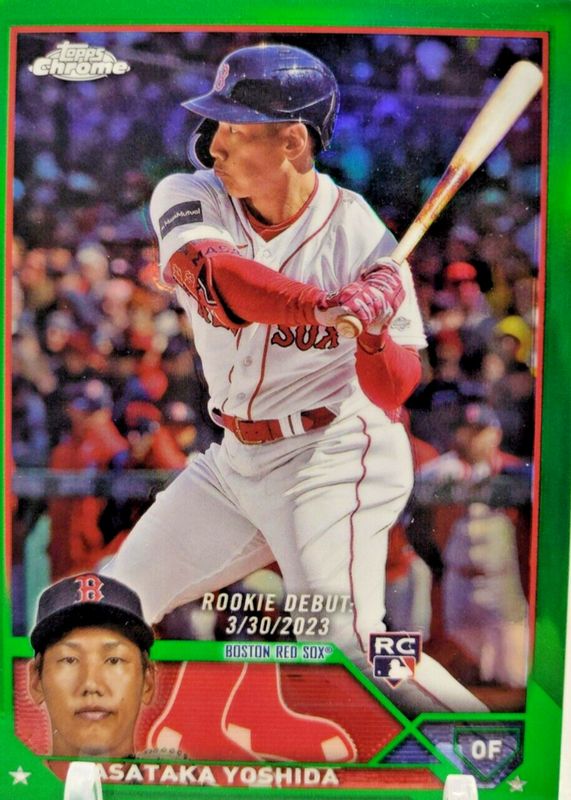 Best Prices Available For Sale of Masataka Yoshida 2023 Topps Chrome Update #USC174 Rookie Debut - Green Refractor /99