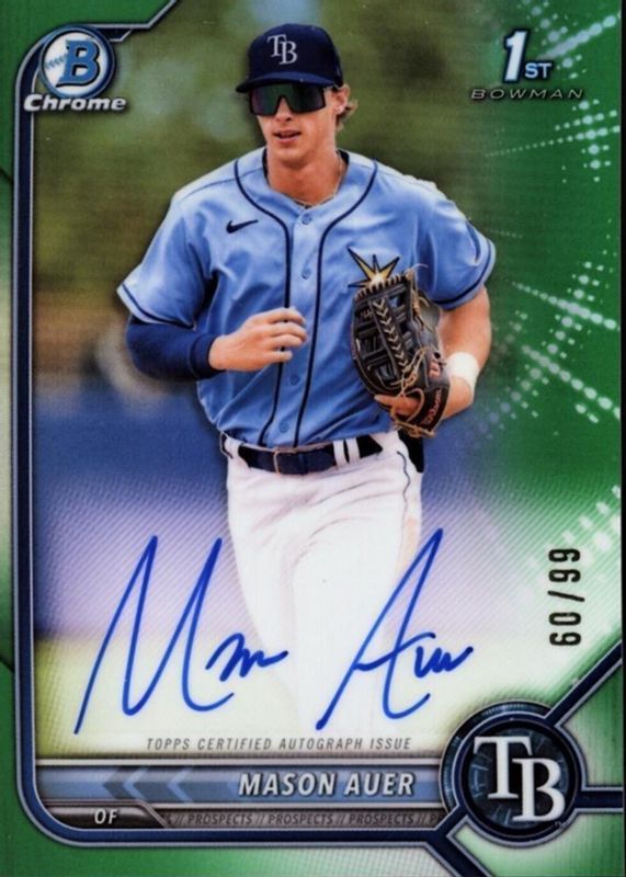 Mason Auer 1st 2022 Bowman Chrome Prospect Green Refractor Auto /99 #CPA-MA Rays
