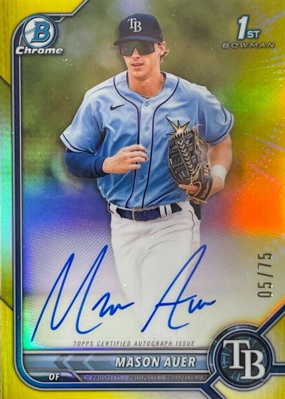 2022 Bowman Chrome Mason Auer 1st Prospect Yellow Refractor Auto #14/75 Rays