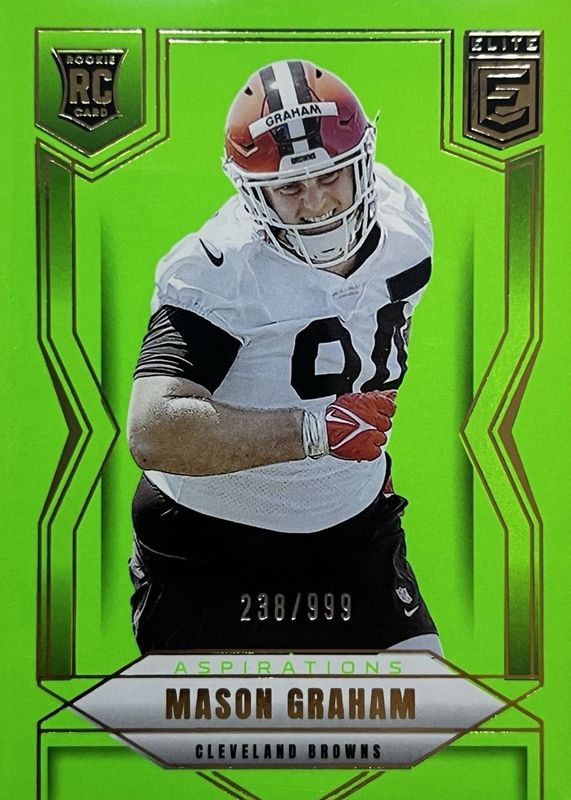 The Mason Graham 2025 Elite #125 Aspirations Lime Green /999 Rookie card in Raw condition has moved up $6.62 (+331%) in the last 30 days and was last sold for $8.62 .