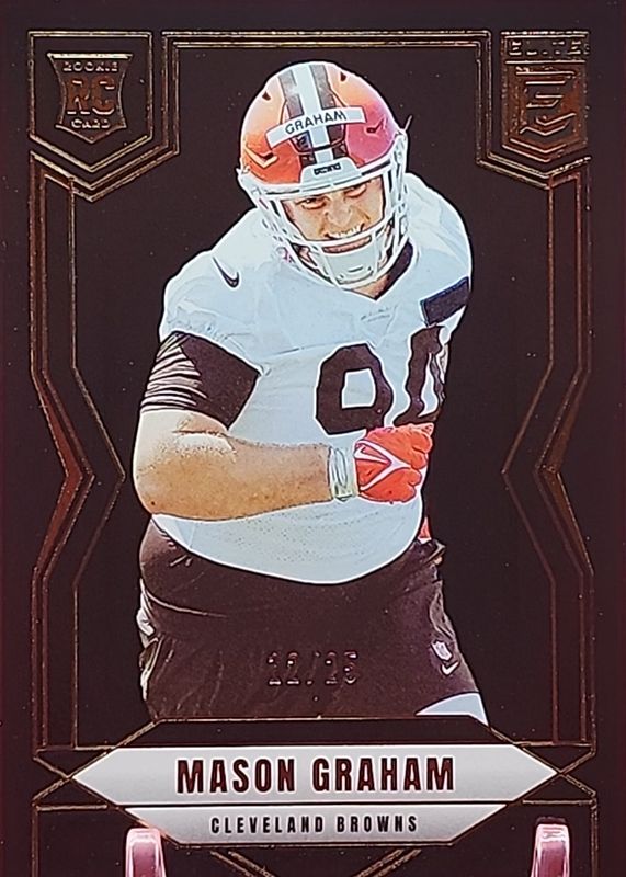 This card is 1 of 26 Mason Graham's card variations in the 2025 Elite set being tracked by Sports Card Investor, including Base Rookie /999, Aspirations (/6), Green Disco, Pink, and Status (/94).