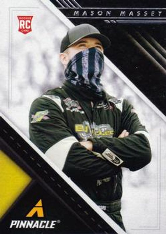 The Mason Massey 2021 Chronicles NASCAR #5 Pinnacle Rookie card is 1 of 52 Mason Massey's card variations in the 2021 Chronicles NASCAR set being tracked by Sports Card Investor, including Base, Blue /199, Red /99, Purple /25, and Gold /10.