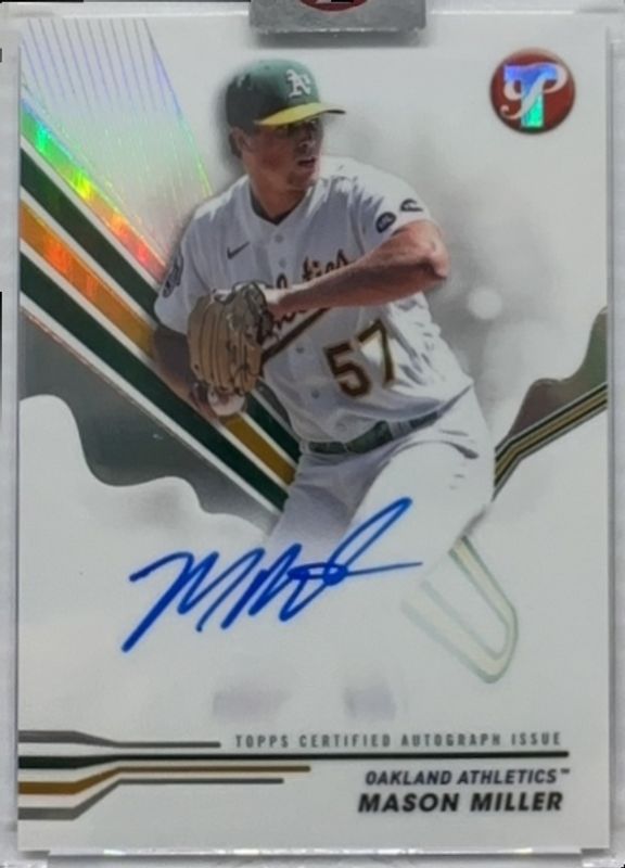 The Mason Miller 2024 Topps Pristine #PA-MM Pristine Autographs card is 1 of 8 Mason Miller's card variations in the 2024 Topps Pristine set being tracked by Sports Card Investor, including Pristine Autographs - Green Pristine Refractor /150, Pristine Autographs - Purple Pristine Refractor /99, Pristine Autographs - Blue Pristine Refractor /75, Pristine Autographs - Gold Pristine Refractor /50, and Pristine Autographs - Orange Pristine Refractor /25.