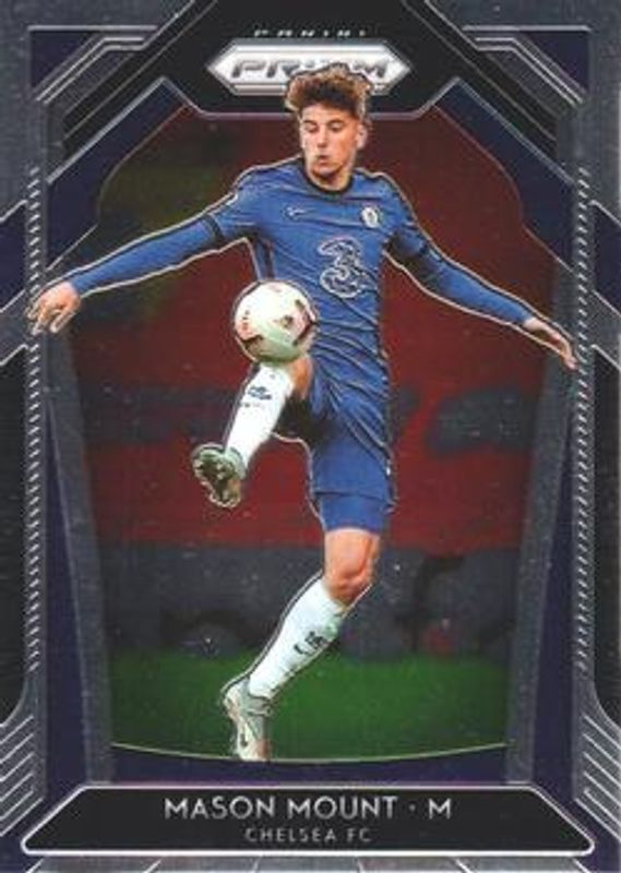 The Mason Mount 2020 Prizm Premier League #217 Base card is 1 of 47 Mason Mount's card variations in the 2020 Prizm Premier League set being tracked by Sports Card Investor, including Green Mojo, Pink Pulsar, White Sparkle, Blue Pulsar, and Breakaway.