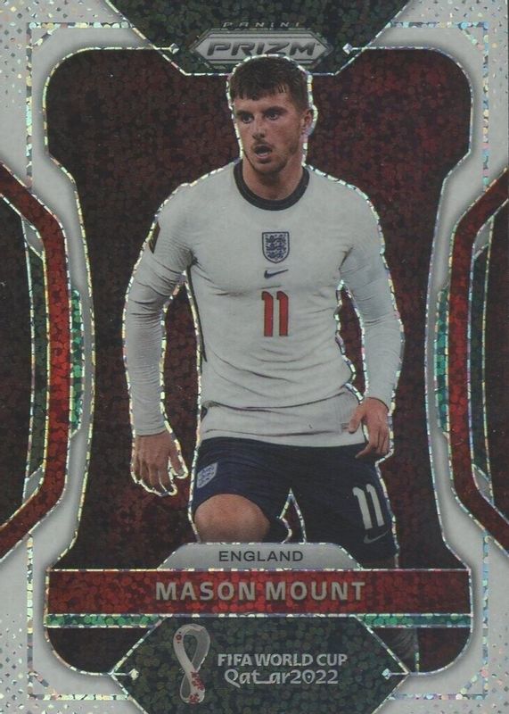 This card is 1 of 29 Mason Mount's card variations in the 2022 Prizm World Cup set being tracked by Sports Card Investor, including Red /399, Blue /299, Blue Wave /199, Purple /199, and Choice Blue /135.