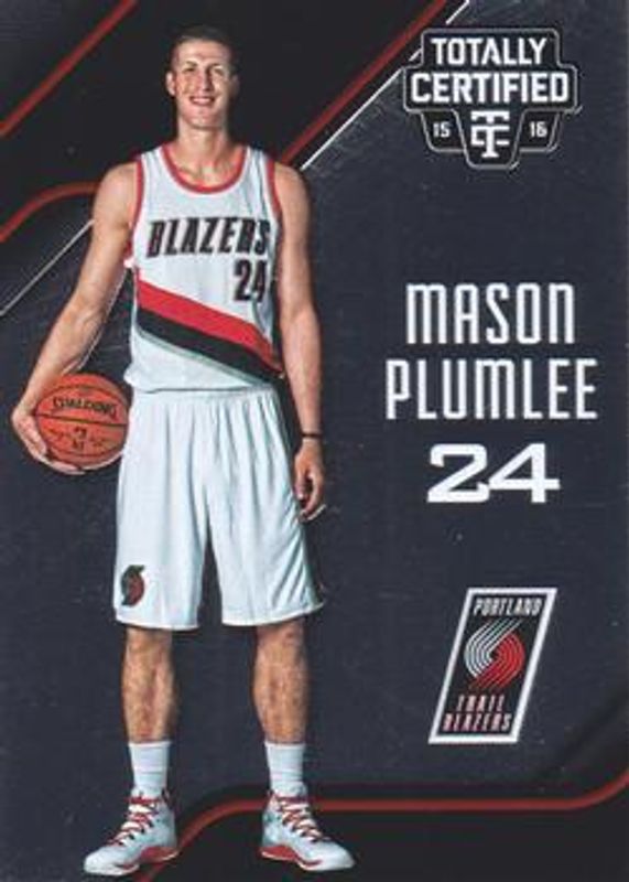 The Mason Plumlee 2015 Totally Certified #53 Base card is 1 of 13 Mason Plumlee's card variations in the 2015 Totally Certified set being tracked by Sports Card Investor, including Mirror Red /149, Mirror Blue /99, Mirror Purple /50, Mirror Camo /25, and Mirror Gold /10.