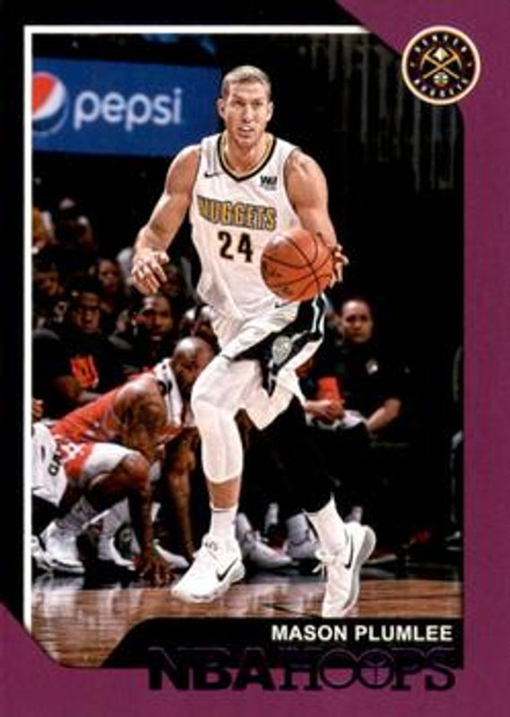 The Mason Plumlee 2018 Hoops #62 Purple card is 1 of 18 Mason Plumlee's card variations in the 2018 Hoops set being tracked by Sports Card Investor, including Base, Red Backs, Premium Boxed Set /199, Blue, and Teal Explosion.