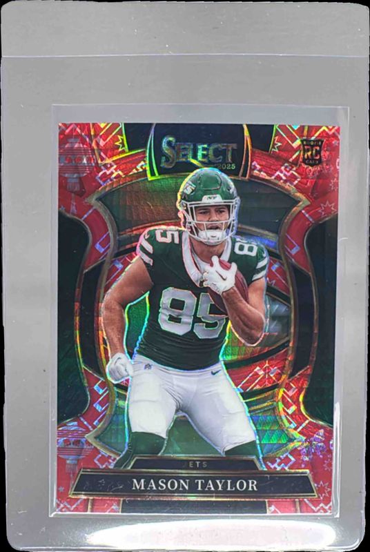 This card is 1 of 169 Mason Taylor's card variations in the 2025 Select set being tracked by Sports Card Investor, including Concourse, Suite Level, Concourse Black & Blue Shock, Concourse Black & Gold Shock, and Concourse Black & Green Shock.