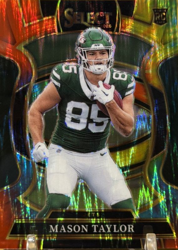 This card is 1 of 169 Mason Taylor's card variations in the 2025 Select set being tracked by Sports Card Investor, including Concourse, Suite Level, Concourse Black & Blue Shock, Concourse Black & Gold Shock, and Concourse Black & Green Shock.