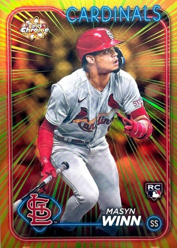 Masyn Winn's Baseball cards are available in at least 58 sets. Masyn Winn's biggest 7-day price movers are 2024 Topps #480 Base, 2024 Topps Chrome #RR-9 Radiating Rookies, and 2024 Topps Chrome #189 Negative Refractor.