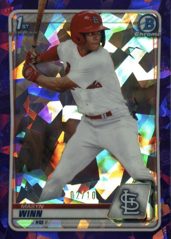 This card is 1 of 9 Masyn Winn's card variations in the 2020 Bowman Draft Sapphire Edition set being tracked by Sports Card Investor, including Chrome (1st), Chrome - Yellow /99 (1st), Chrome - Green /50 (1st), Chrome - Orange /25 (1st), and Chrome - Aqua /20 (1st).