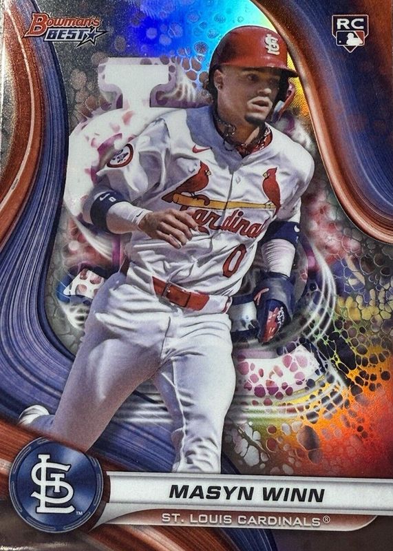 The Masyn Winn 2024 Bowman's Best #60 Refractor Rookie card in Raw condition has moved down -$0.61 (-31.3%) in the last 30 days and was last sold for $1.34 .