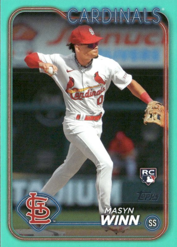 The Masyn Winn 2024 Topps #480 Aqua Rookie card in Raw condition has moved down -$5.08 (-61.4%) in the last 30 days and was last sold for $3.19 .