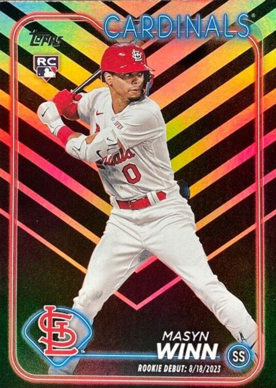 The Masyn Winn 2024 Topps Update #US272 Rookie Debut - Orange & Black Foil card in Raw condition has not changed in price in the last 30 days and was last sold for $4.25 .